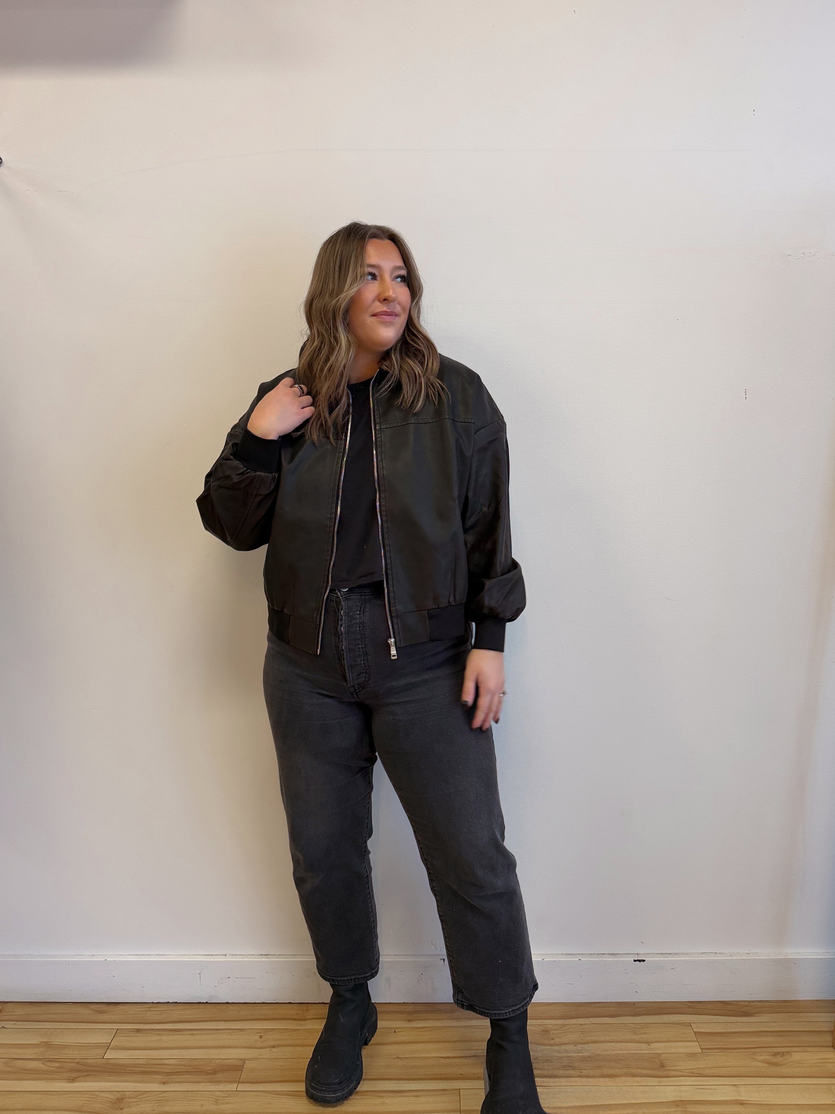 Faux Leather Oversize Bomber Jacket